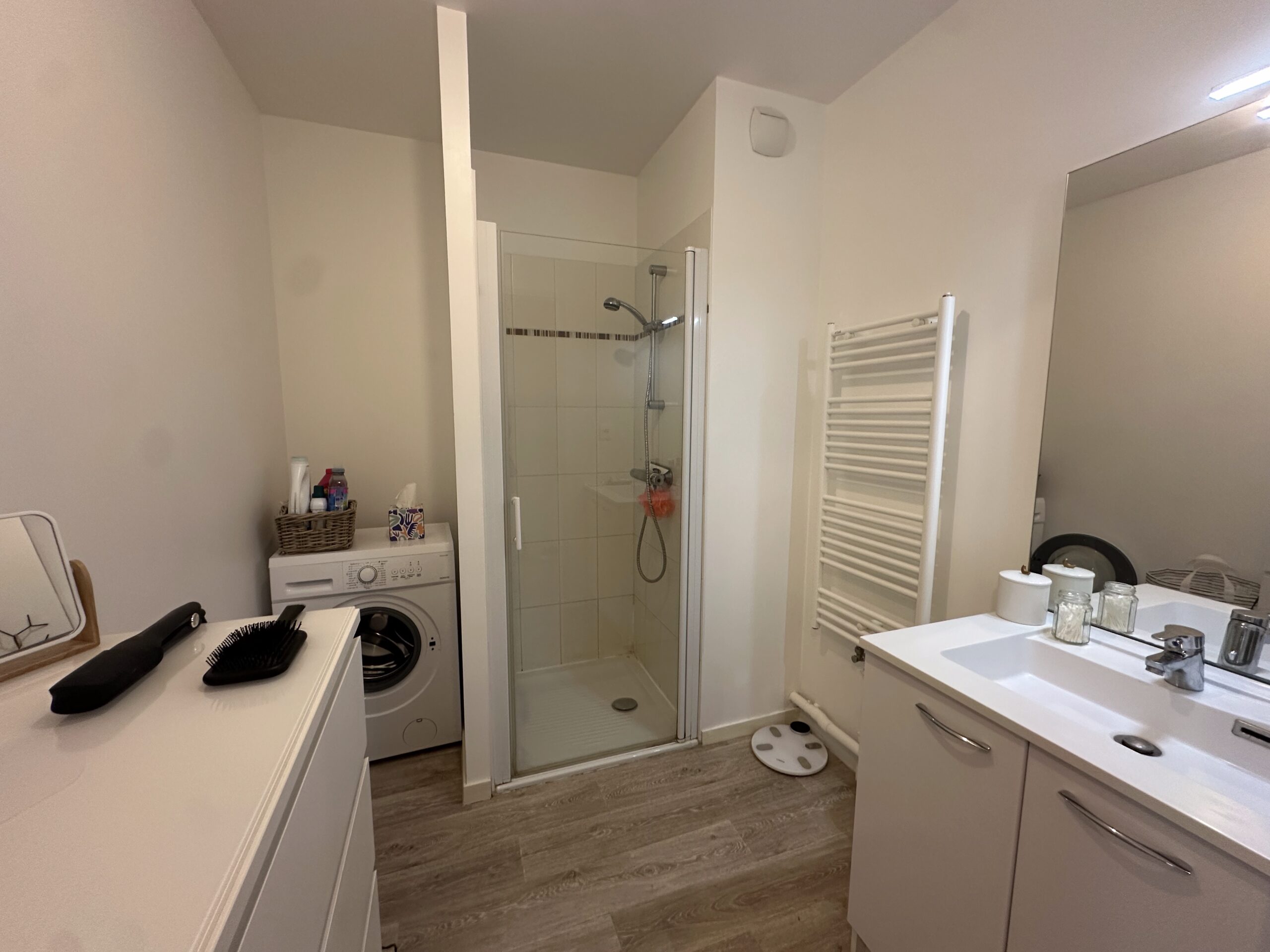 L’appartement offre une entrée fonctionnelle desservant une belle pièce de vie lumineuse de près de 26 m², qui intègre le séjour et l’espace cuisine. Côté nuit, vous profiterez d’une vaste chambre d’environ 13 m² , d’une salle d’eau avec douche extra-plate et meuble vasque, ainsi que de toilettes séparées.