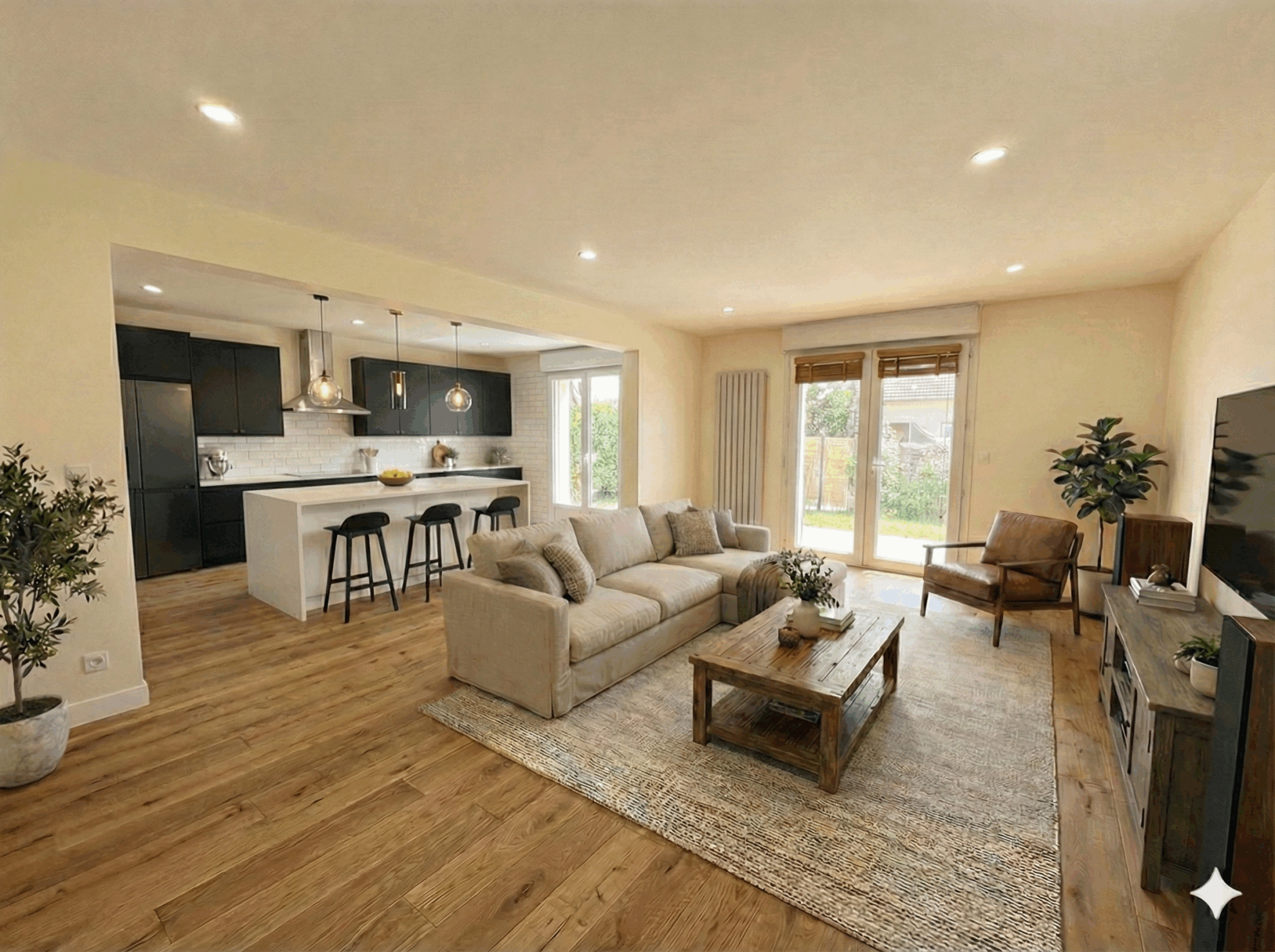 Projection d’aménagement : Imaginez une vaste pièce de vie en double exposition avec cuisine ouverte, accompagnée de 3 belles chambres (voir notre dernière photo en projection 3D pour visualiser le potentiel du salon).